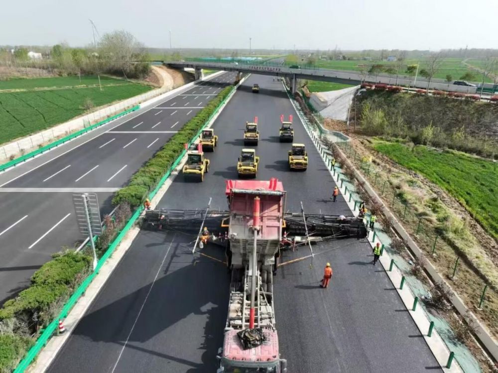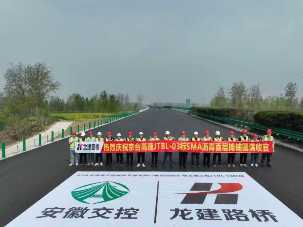 4月6日G3京台高速公路蚌埠互通至路口枢纽段改扩建工程JTBL-03标段率先完成右幅SMA-13沥青上面层施工任务。标志着该项目建设取得关键性、阶段性的成果,正式进入通车前的收尾冲刺阶段,为6月份项目全线贯通奠定了坚实基础。