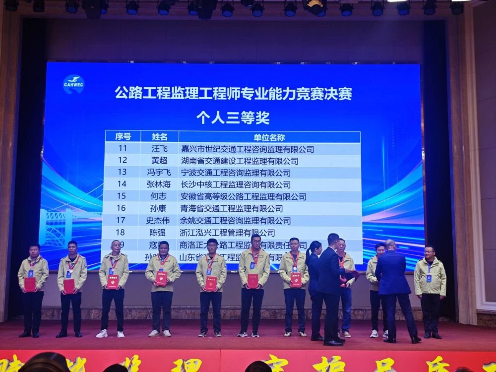 2025年11月7日至8日,第二届公路工程监理工程师专业能力竞赛决赛在河北省石家庄市国源朗怡酒店隆重举行。来自全国各省的监理精英经过激烈角逐,最终我公司的何志同志凭借卓越表现斩获个人第三名,成为安徽省仅有的两名入围决赛选手中的佼佼者,为安徽交通监理行业赢得殊荣。