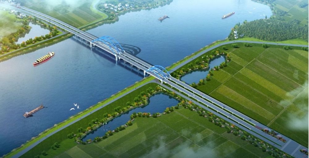 项目的前期整体规划,为保证双幅桥满足防洪、通航等要求,本次拆除乌金渡老桥后,在原址新建的大桥在河道管理范围内桥梁形式及桥跨布置与前期已建成的上行桥保持一致且对孔布置,形成横跨白荡湖湿地的双子拱桥,打造成一张湖区靓丽的风景名片。